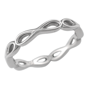 This designer wedding ring has a traditional infinity symbol which repeats itself around the band.