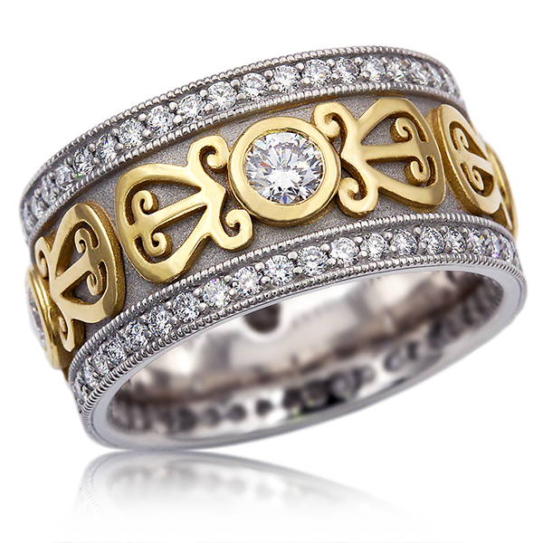 Our Symbol Wedding Band is a timeless design that celebrates culture, heritage, and personal expression. This ring features a series of intricate symbols, each carrying deep meaning, making it a perfect piece for those who want their wedding band to tell a story.