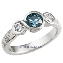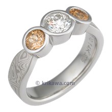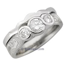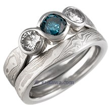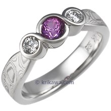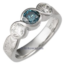 Three Stone Infinity Mokume Engagement Ring with Blue Sapphire