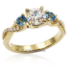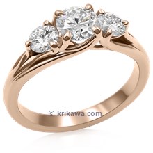 Elevate the elegance of a classic three-stone engagement ring with a captivating twist: a delicate strand of intertwined diamonds. Play with color and shape and mix stone shapes and styles. The twisting band boasts a seamless fusion of a plain polished strand and a pave-set diamond strand, adding a touch of sophistication and brilliance.
