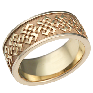 The endless Tibetan knot is an appropriate symbol for your eternal love. In this handcrafted ring, the knot is a raised, repeating symbol.
