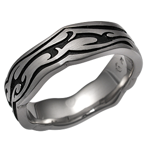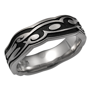 This custom Tribal Eternity Band has been darkened in its recesses and finished with a high polish.