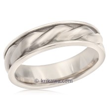 A gorgeous twisted mens band, the rope goes round and round without end. Two parts woven into one, like a fine marriage, crafted with love and finished with a fine eye towards detail.Choose the size, width and metal that would make this a perfect wedding ring for you, and wear art.