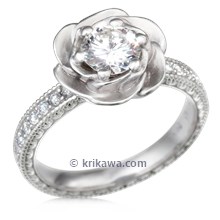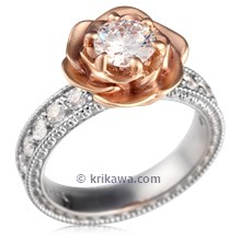 A sculpted rose emerges from entwined vines in the Twisted Rose Engagement Ring—a poetic fusion of organic form and refined structure. The twisting band suggests movement and growth, while the delicately carved bloom cradles your chosen center stone with poise and elegance. This vintage design captures the symbolism of love unfolding, shaped by the raw beauty of nature and the precision of fine craftsmanship.