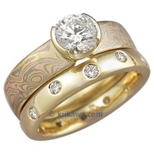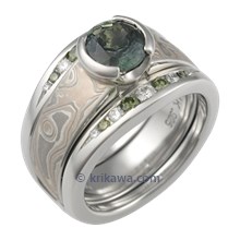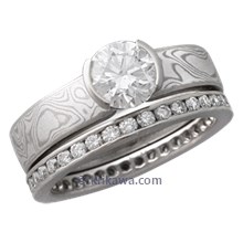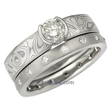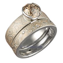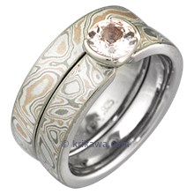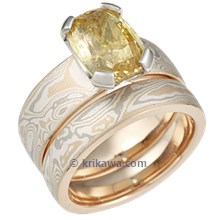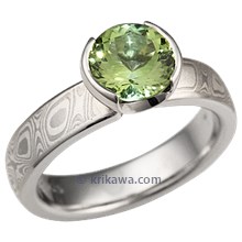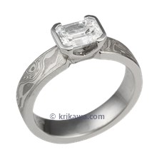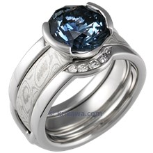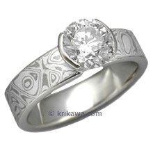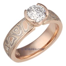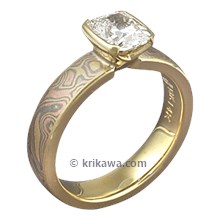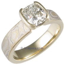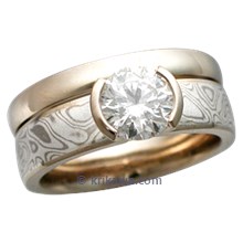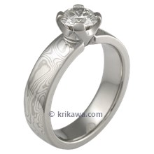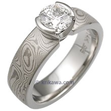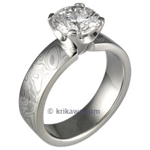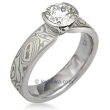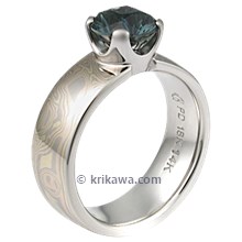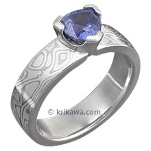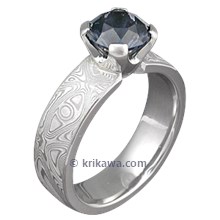 Two Tone Mokume Solitaire Straight, Tapered Head Engagement Ring with Blue Sapphire