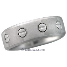 This ring has alternating metals around the band, broken up by hollow circles. Shown 7mm wide. Matte finish.