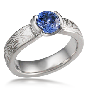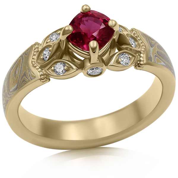 Vintage Leaf Mokume Engagement Ring