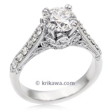 For lovers of antique beauty and meaningful design, this ring offers a timeless expression of devotion. Select your own gemstone and metal to transform this ornamental piece into something that reflects your story.