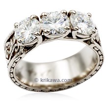 The Vintage Three Stone Anniversary Ring is a quiet ode to lasting love — a design that honors the years behind you and the beauty still ahead. Leaf and vine patterns wind across the band like memories etched in time, framing three radiant stones that celebrate your journey together. It’s vintage in spirit, yet deeply personal in meaning.