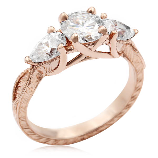 The Vintage Three Stone Crossover Engagement Ring captures the feeling of a love that winds, weaves, and wraps itself around the soul. Like the intertwining of two lives, the design flows in gentle arcs, joining three brilliant stones in a dance of connection and meaning. It speaks of a journey shared, a future dreamed, and a past honored.