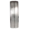 This is the men's wedding ring to match the Vintage Wreath Engagement Ring. Like the women's ring, it has a groove encircling the band and millegrained edges.