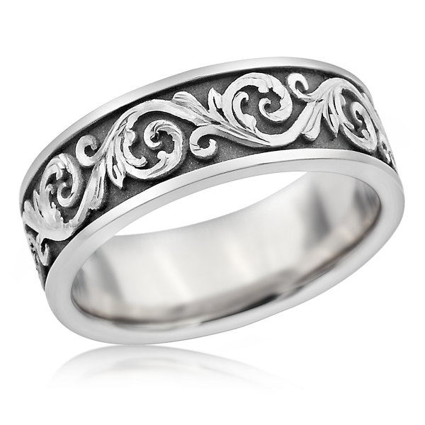 Western Floral Eternity Symbol Wedding Band In Yellow Gold