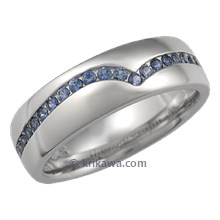 White and Royal Ocean Diamond Wave Straight Wedding Band